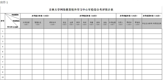 5.《吉林大学网络教育校外学习中心年检综合考评统计表》见附件1。