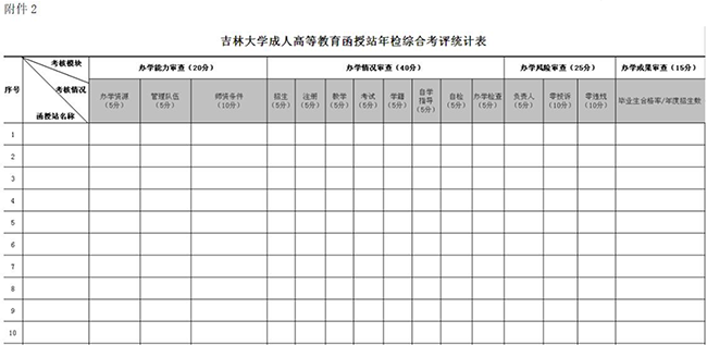 6.《吉林大学成人高等教育函授站年检综合考评统计表》见附件2。