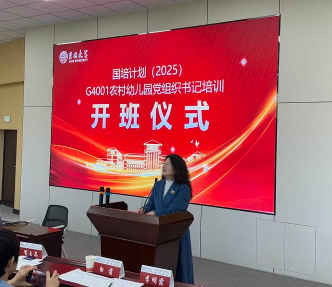 白茵对全体参训教师表示热烈欢迎,并介绍了吉林大学概况。她强调,本次培训旨在系统提升农村幼儿园党组织书记的履职能力,通过专业化课程为学员“充电赋能”,进一步夯实农村幼儿园党建基础,护航学前教育稳健发展。