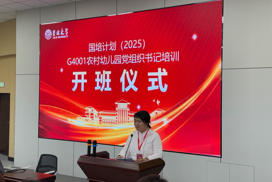 10月19日下午,国培计划(2025)——农村幼儿园党组织书记培训班开班仪式在吉林大学南湖校区顺利举行。吉林大学继续教育学院(培训学院)副院长白茵、长春市二道区教育第一幼儿园乐群分园园长张晶出席开班仪式并致辞。仪式由吉林大学继续教育学院(培训学院)基础教育发展研究中心主任李明霞主持。